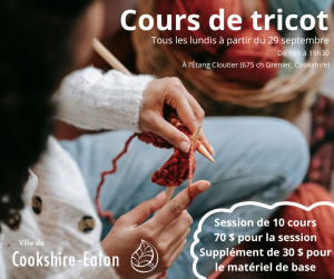 Cours de tricot cet automne à Cookshire !